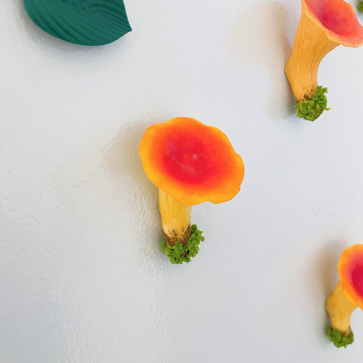 My realistic mushroom fridge magnets are crafted as one-piece designs with an inseparable head and stem. Made from cold porcelain, they differ from artistic mushrooms in both material and finish, featuring a matte gloss that enhances their lifelike appearance. These mushrooms are designed to resemble real ones closely, but please note that they should not be soaked in water or exposed to direct sunlight for extended periods.